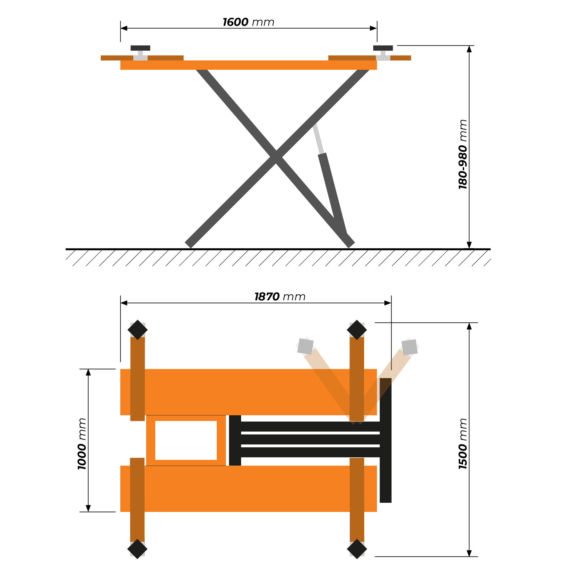 Extra schmaler Scherenwagenheber. Hubhöhe: 180 - 960 mm. Die kurze Hubzeit (25-30 Sekunden) und das Wagenheber-Design machen ihn ideal für vielbeschäftigte Reifenservice-Werkstätten. Tragkraft: 3t.