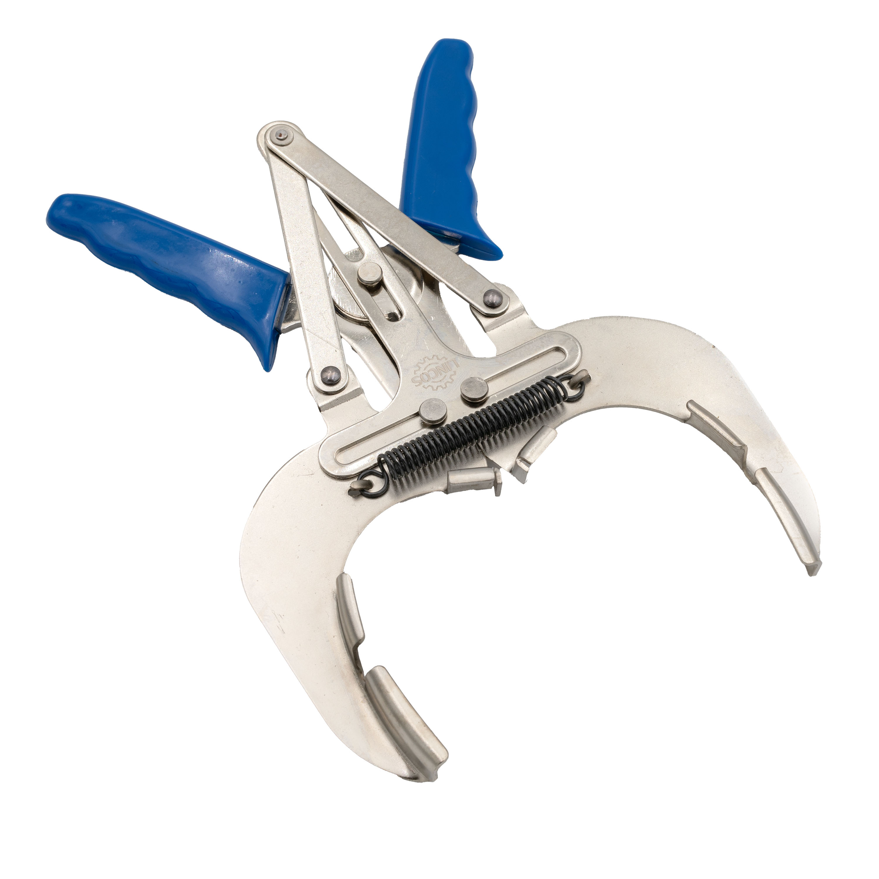 - Die Konstruktion der Zange ermöglicht ein beschädigungsfreies Auseinanderziehen des Kolbenrings.