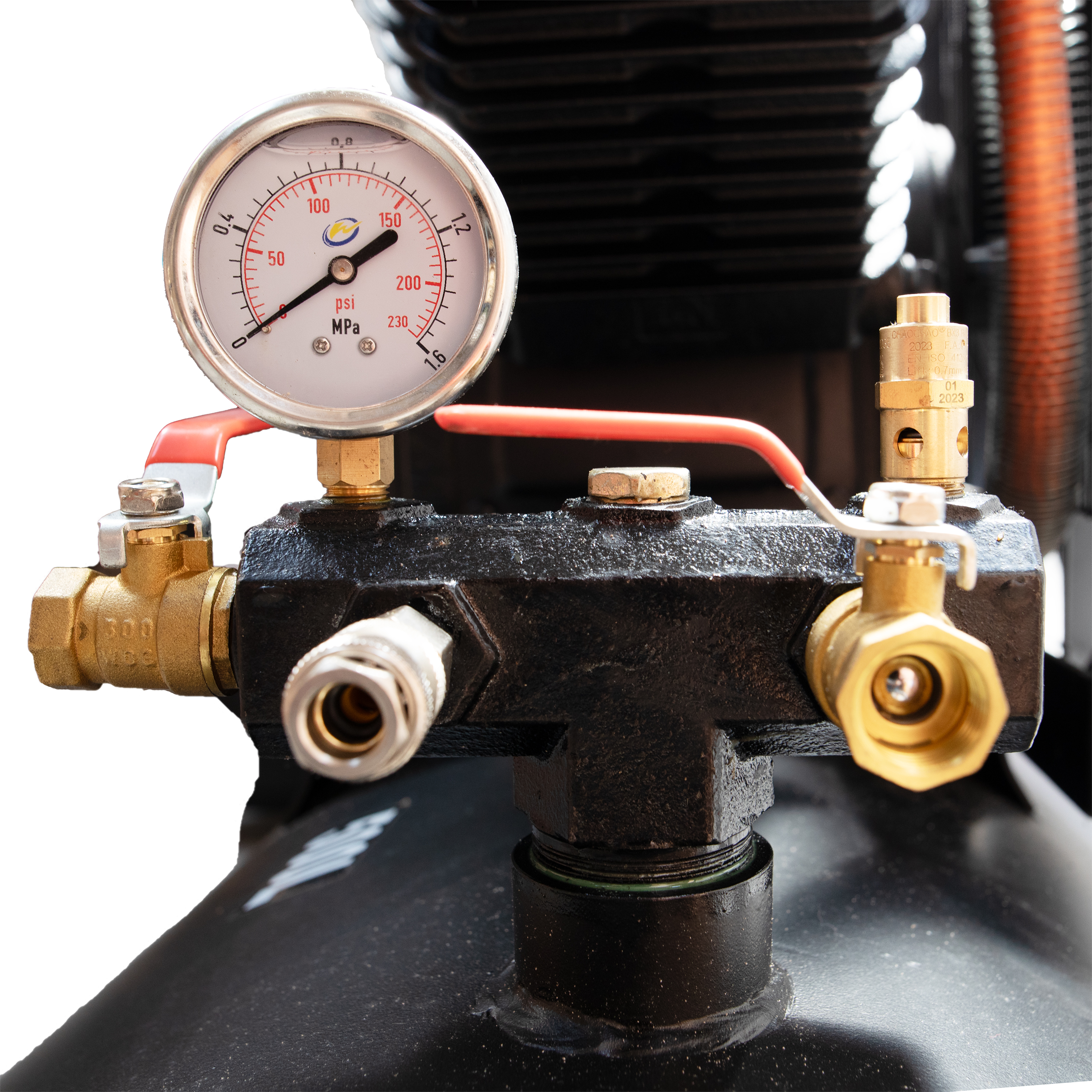 - Zweistufiger Kolbenkompressor: Das zweistufige Design bietet eine unkomplizierte, effektive Kompression, ideal für verschiedene Anwendungen.