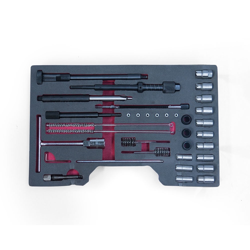 The kit is suitable for renovating a diesel injector housing, cleaning an injector housing and bore, as well as a glow plug bore using milling cutters.