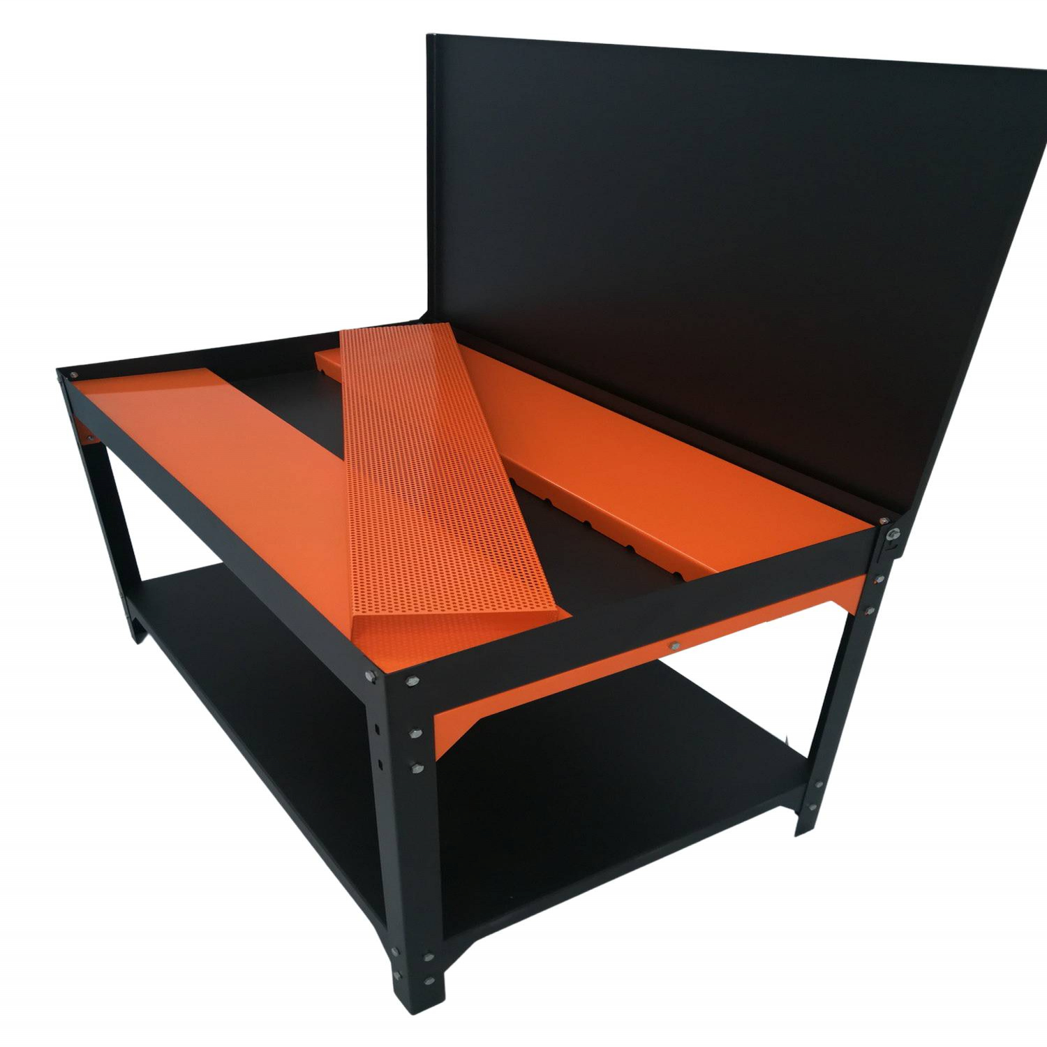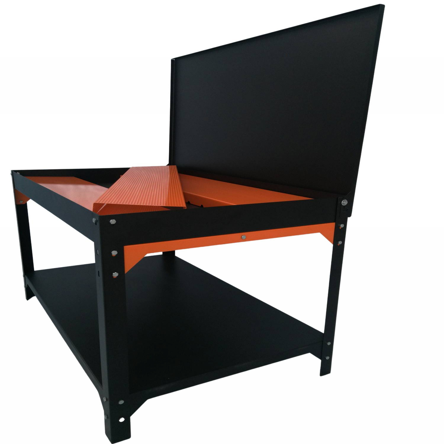 Parts washer, demolition table with 90 liter tank. Tank size 125x75x9,5cm. Height 80cm. With additional shelf. Load capacity 150kg.