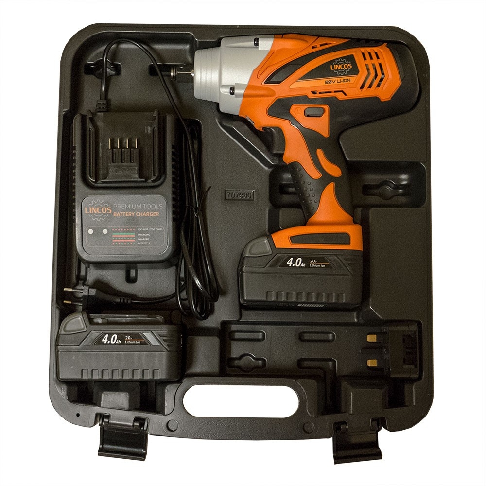 Shortest length, highest torque and lightest weight in its class. 650 Nm maximal torque. Heavy duty all metal mechanism, overheat protection, 3 LED indicators battery fuel gauge, variable speed control, built-in LED work light, with 2 batteries.