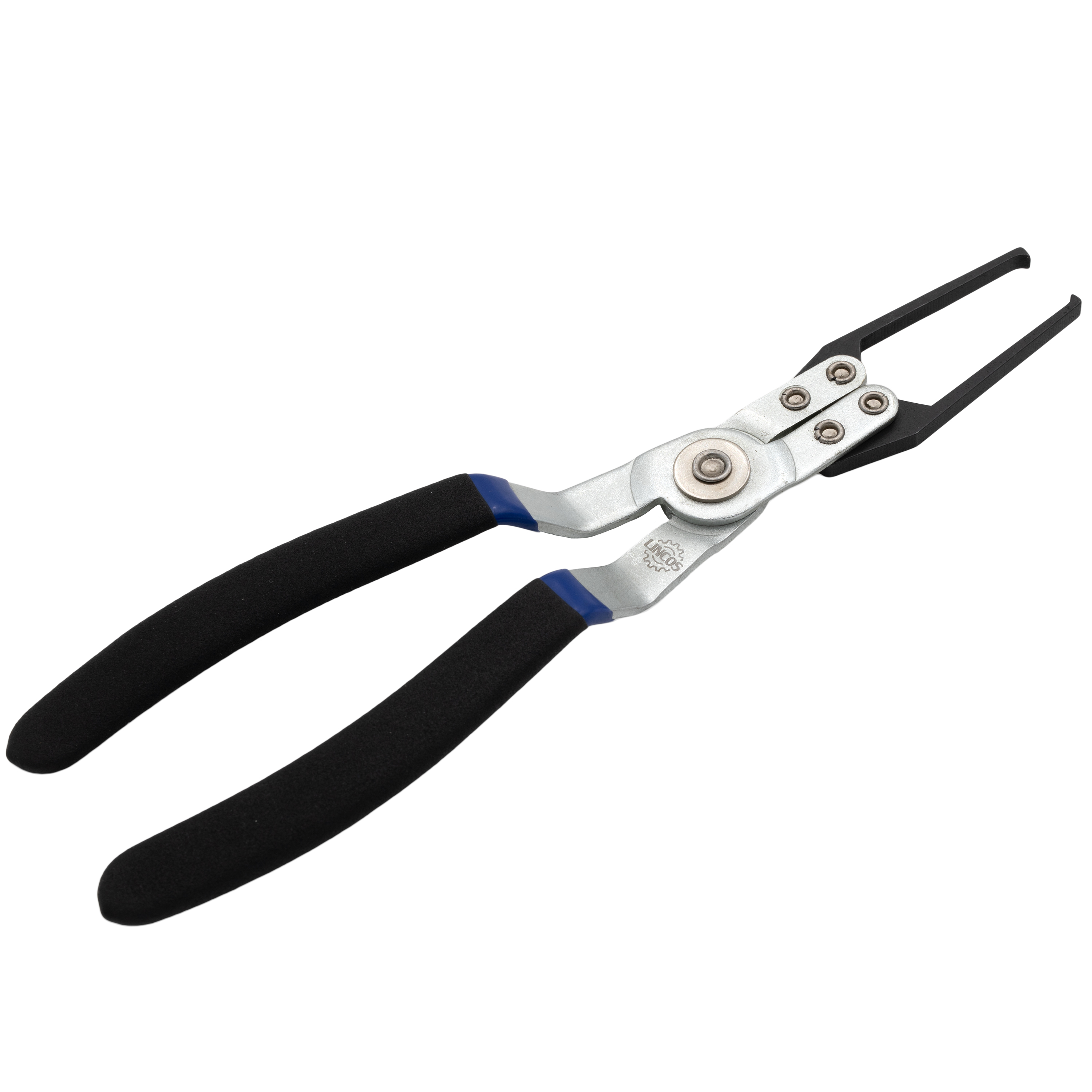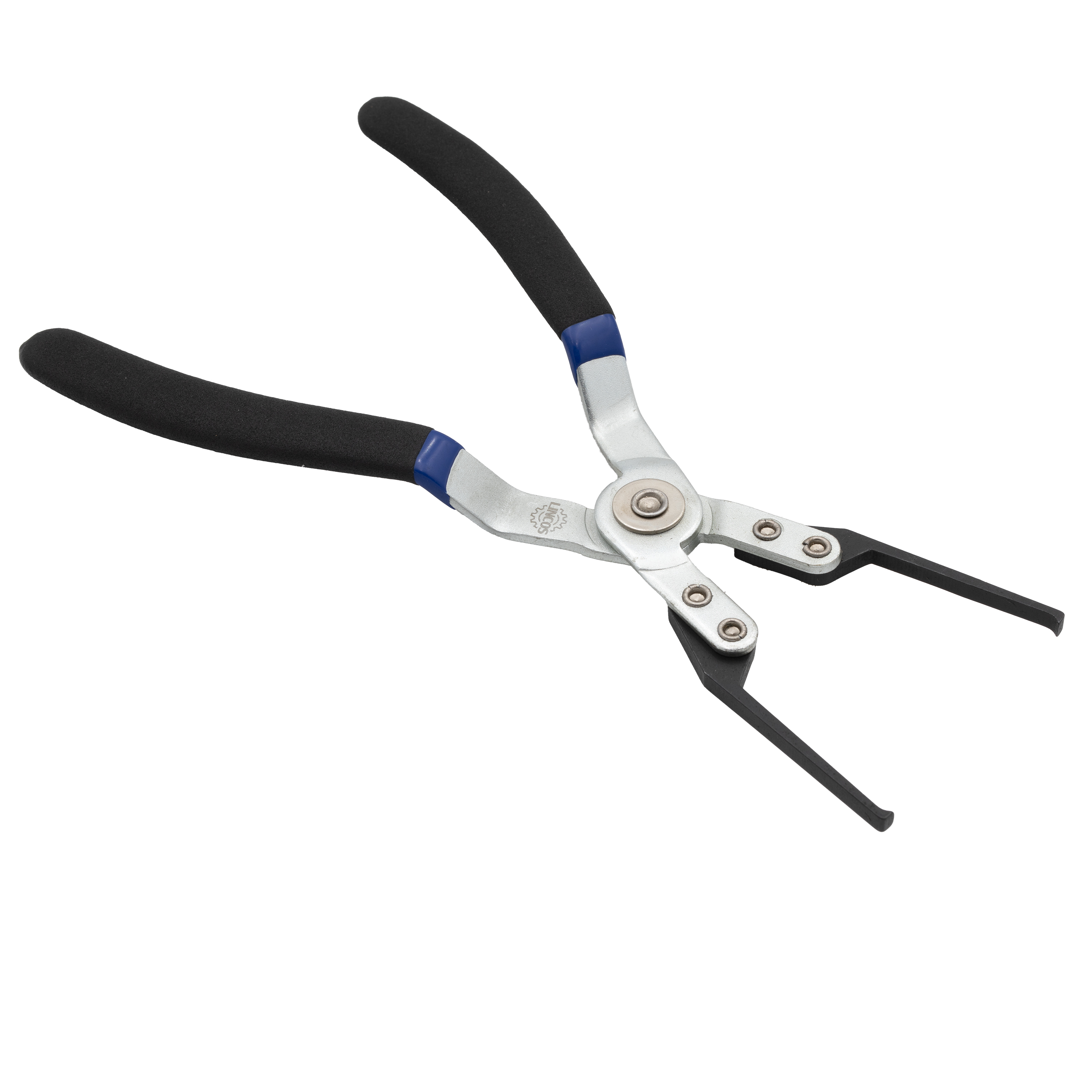 Professional automotive relay extractor pliers with angled jaws (60 degrees) and a spring-loaded composite handle for easy, one-handed operation. 200mm long, suitable for most vehicles.