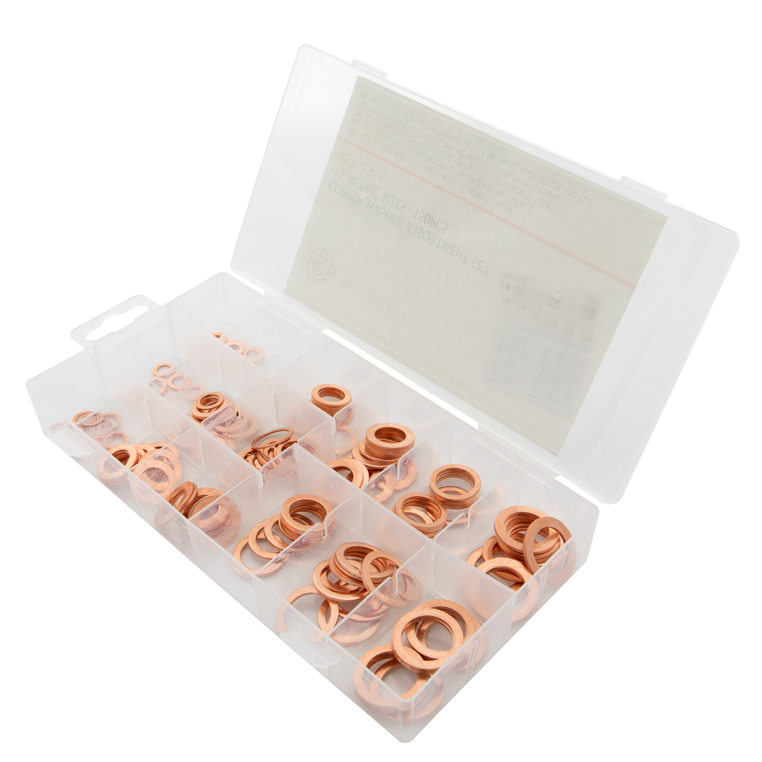 Copper washer assortment set, 15 metric sizes, 150pcs