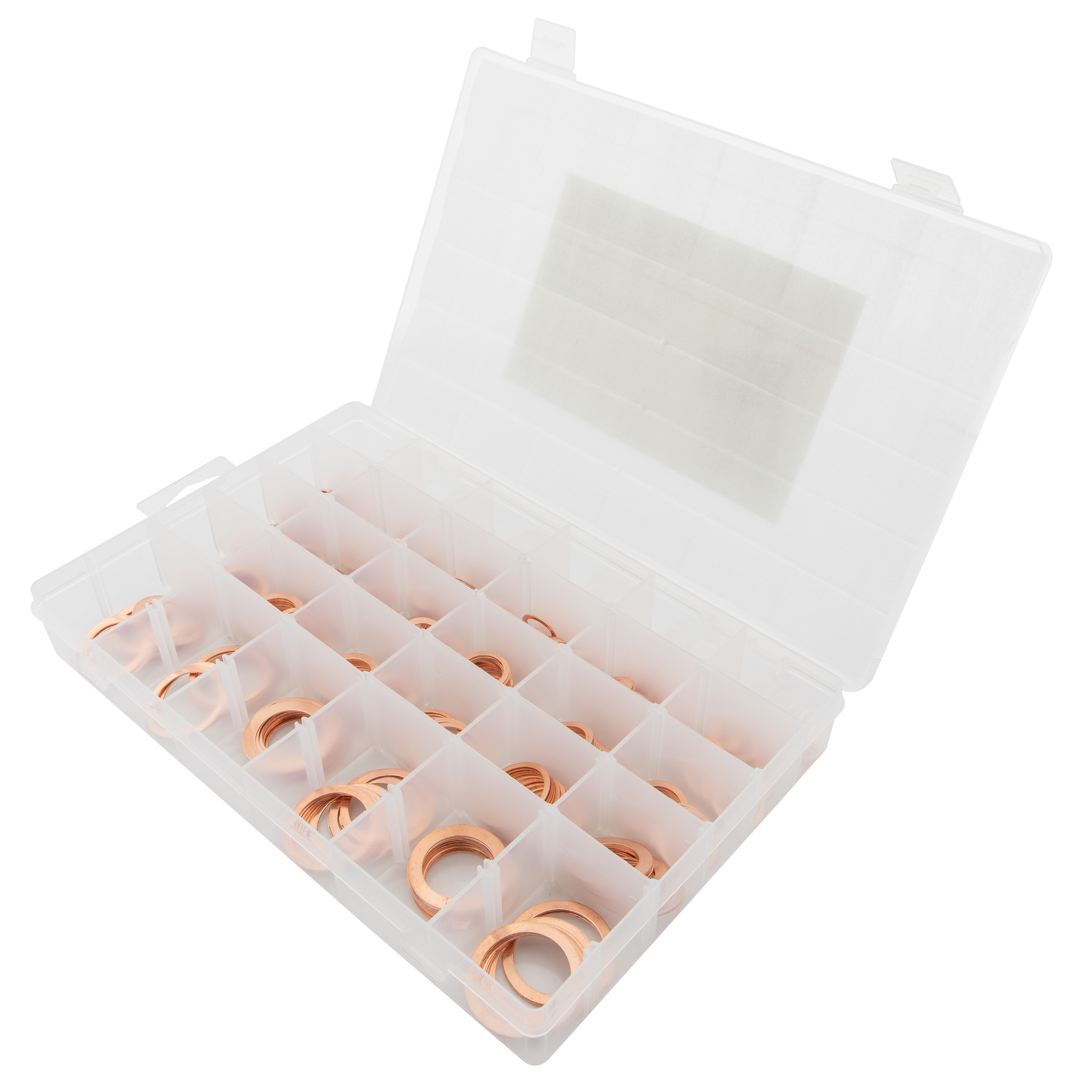 Copper washers are used in the automotive industry and power transmission hydraulics, providing a reliable seal for all threaded connections. This versatile and high-quality set includes various sizes of copper washers, so you'll always have the right size washer for every job.