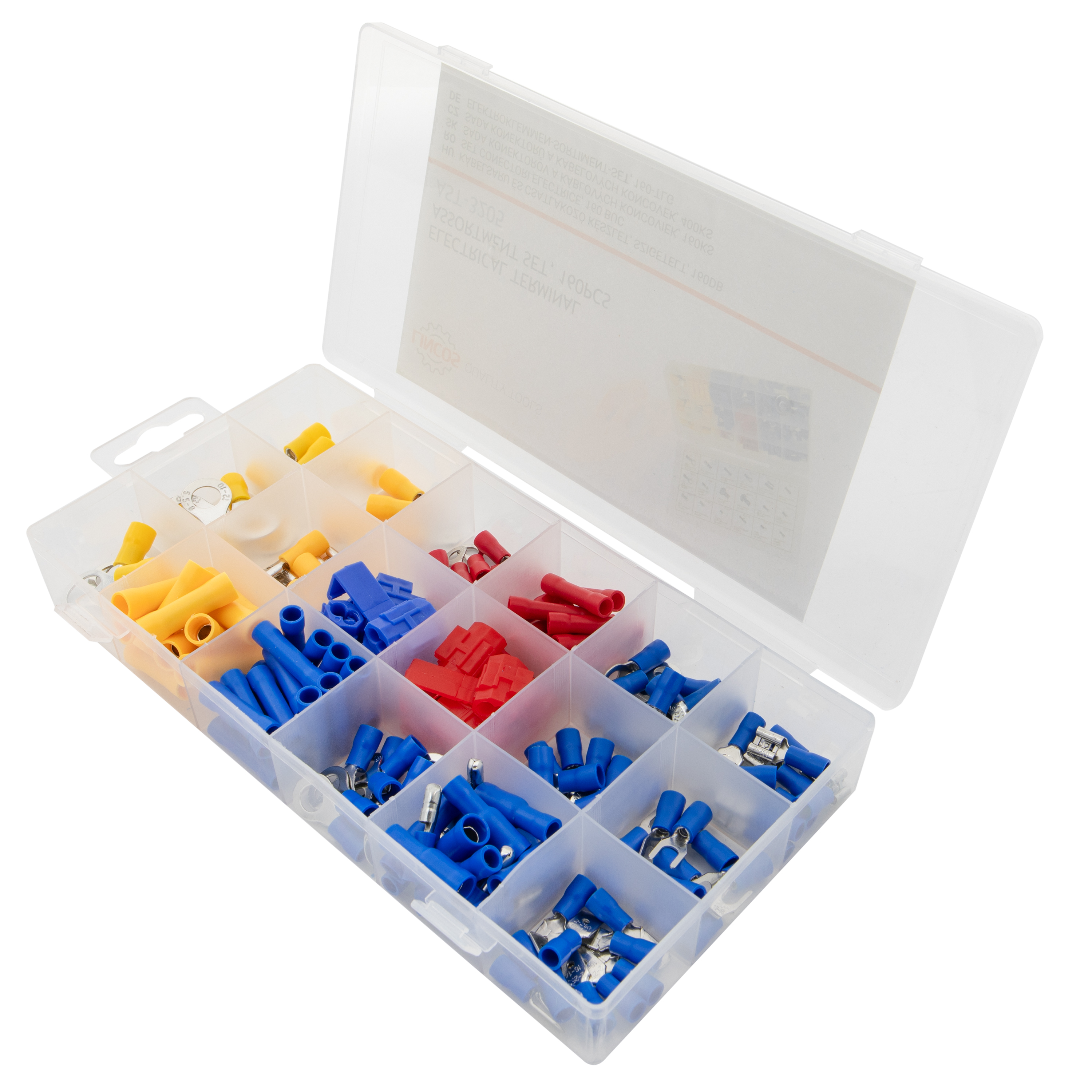 The set comes in a compartmented plastic storage case, keeping all terminals neatly organized and easily accessible for quick and efficient repairs or installations.