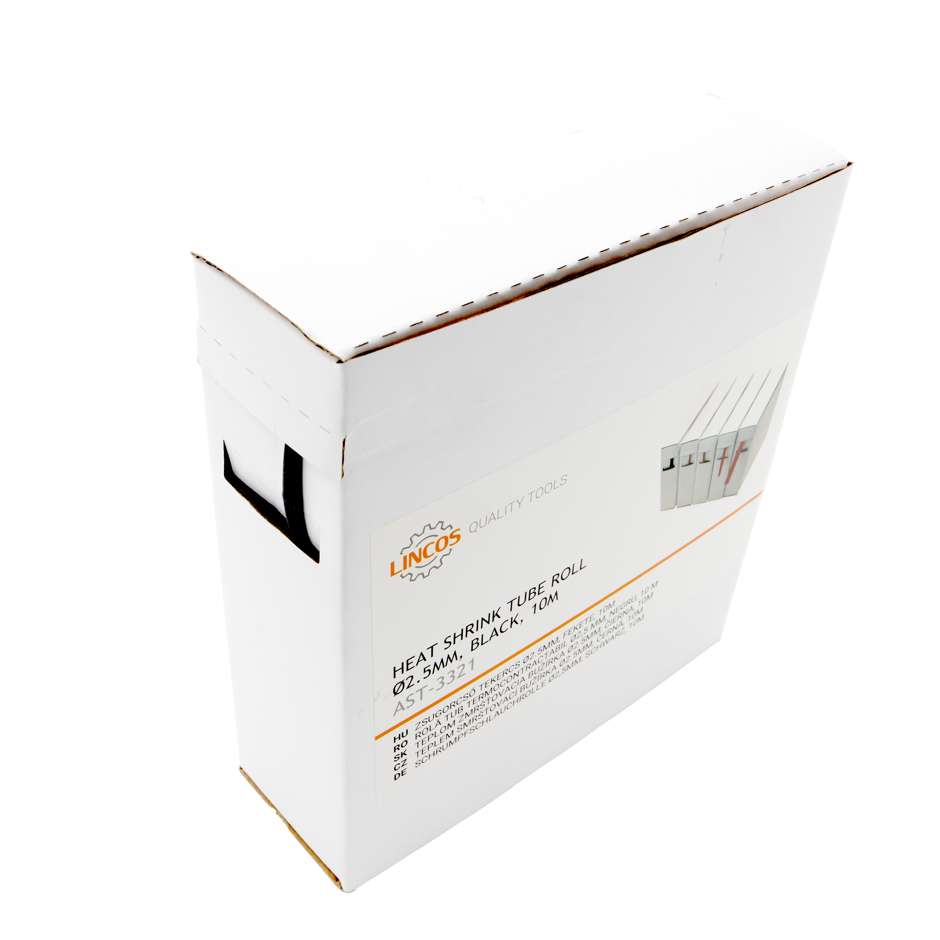 Heat shrink tube roll with 2.5mm diameter and 10m length. Provides secure insulation for cables and electrical connections in automotive, electronics, and industrial setups.