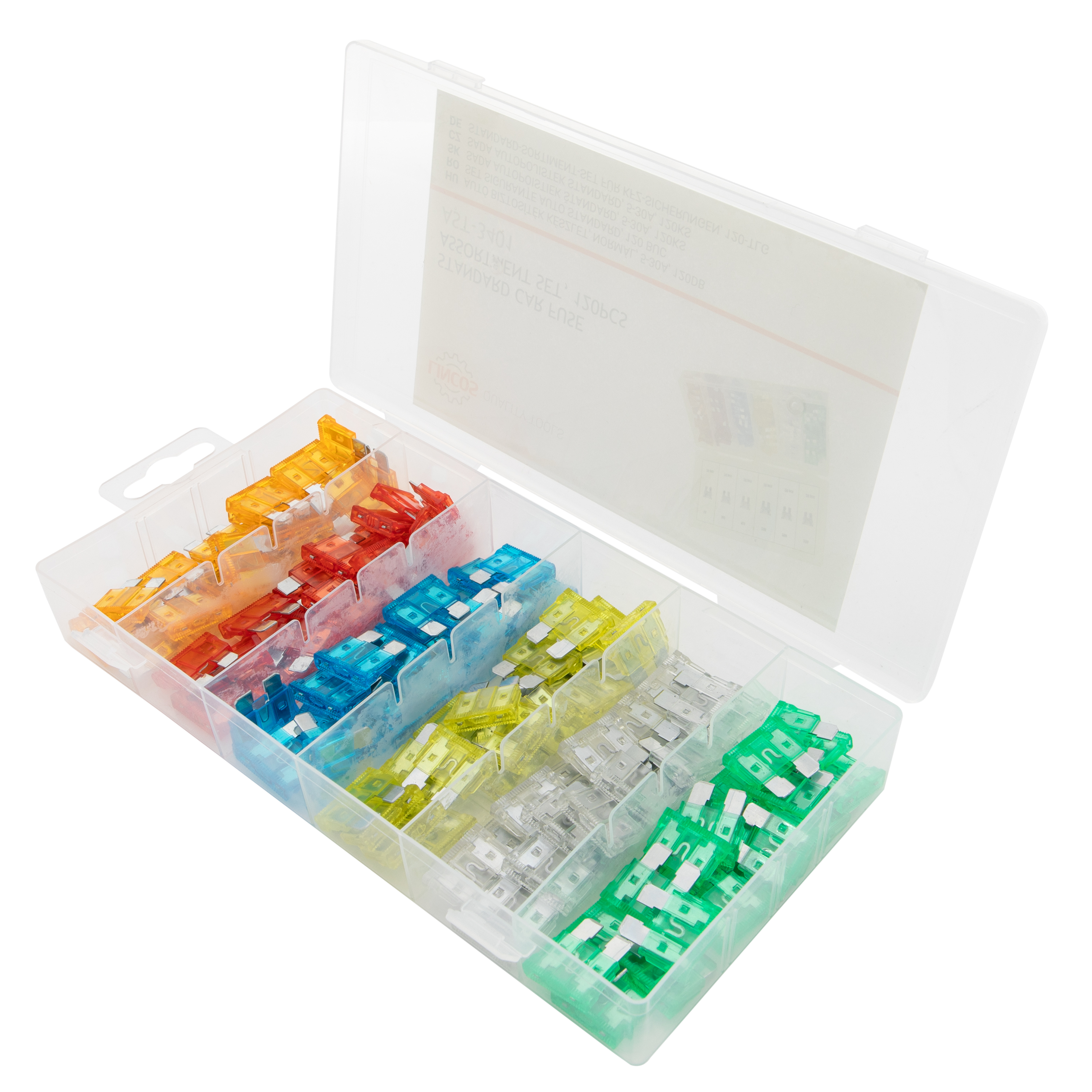 • 120-piece car fuse set – Includes six different amperage ratings (5A to 30A)