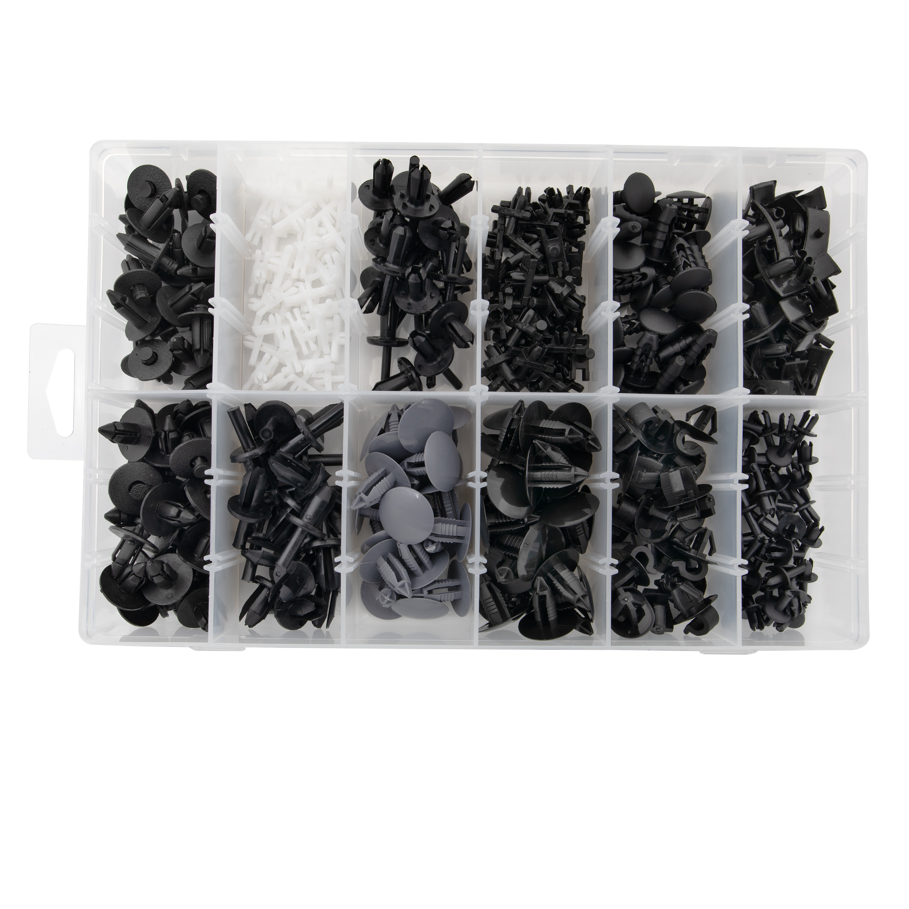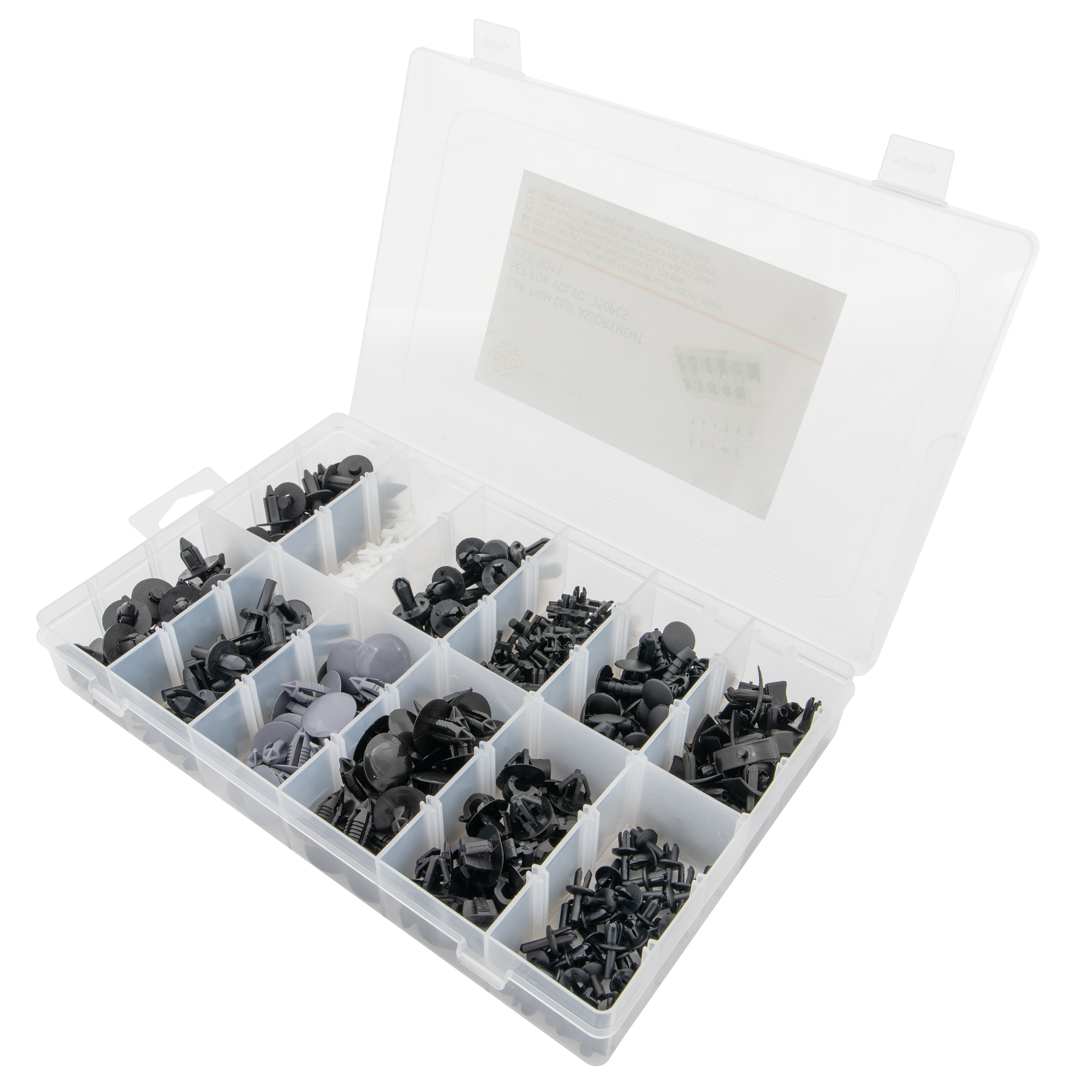 The set includes push-type retainers, grommets, moulding clips, and other essential fasteners, making it ideal for automotive repairs and replacements.