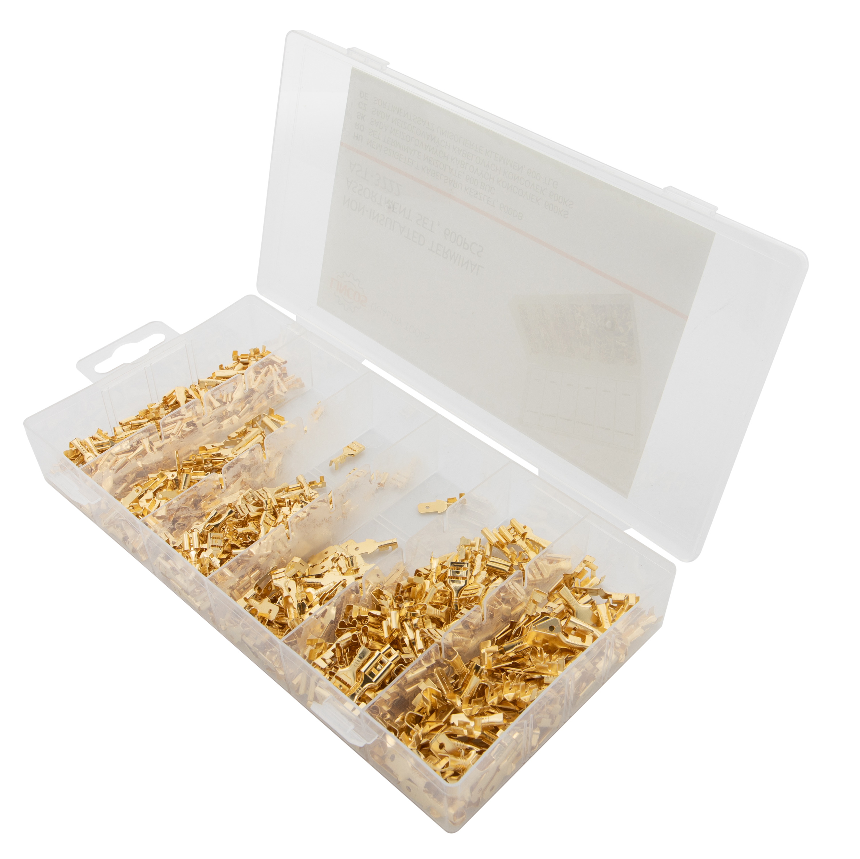 • 600-piece non-insulated terminal set – Includes male and female connectors in various sizes