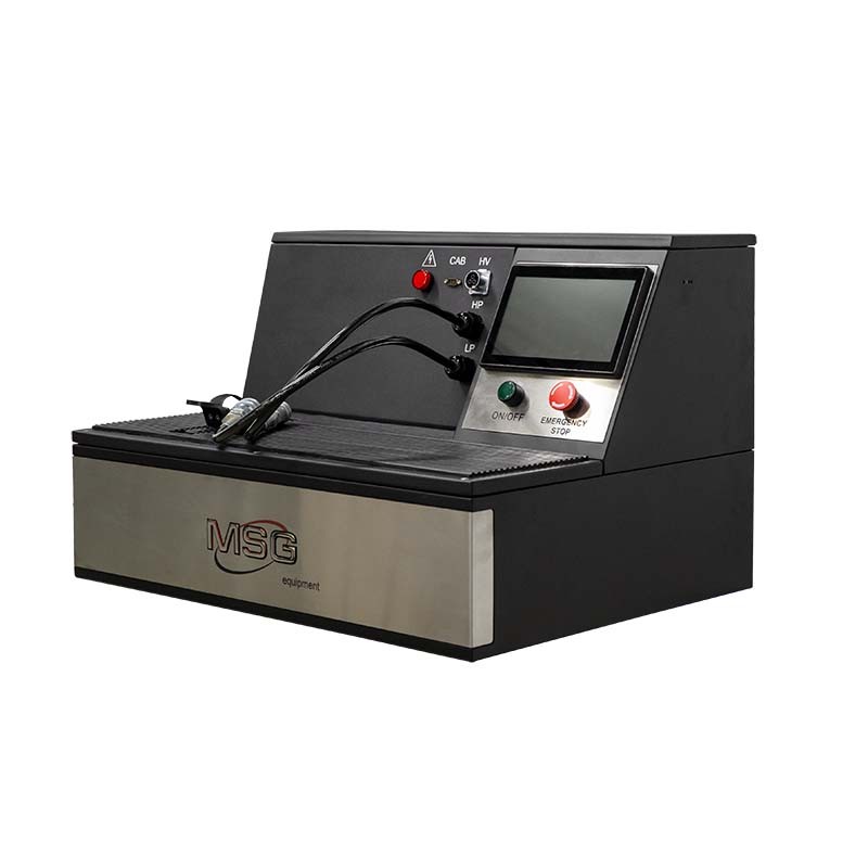 The MS112 test bench is designed for diagnosing electric compressors in vehicle air conditioning systems with a DC power supply voltage of 200–400V. It evaluates compressor performance and inverter functionality using compressed nitrogen as the working medium.