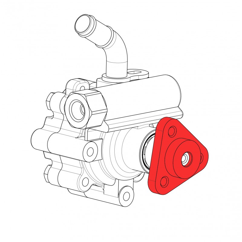 Specialized tool for dismounting power steering pump pulley hubs during hydraulic system repairs. Minimum risk to damage the pump itself in repair.
