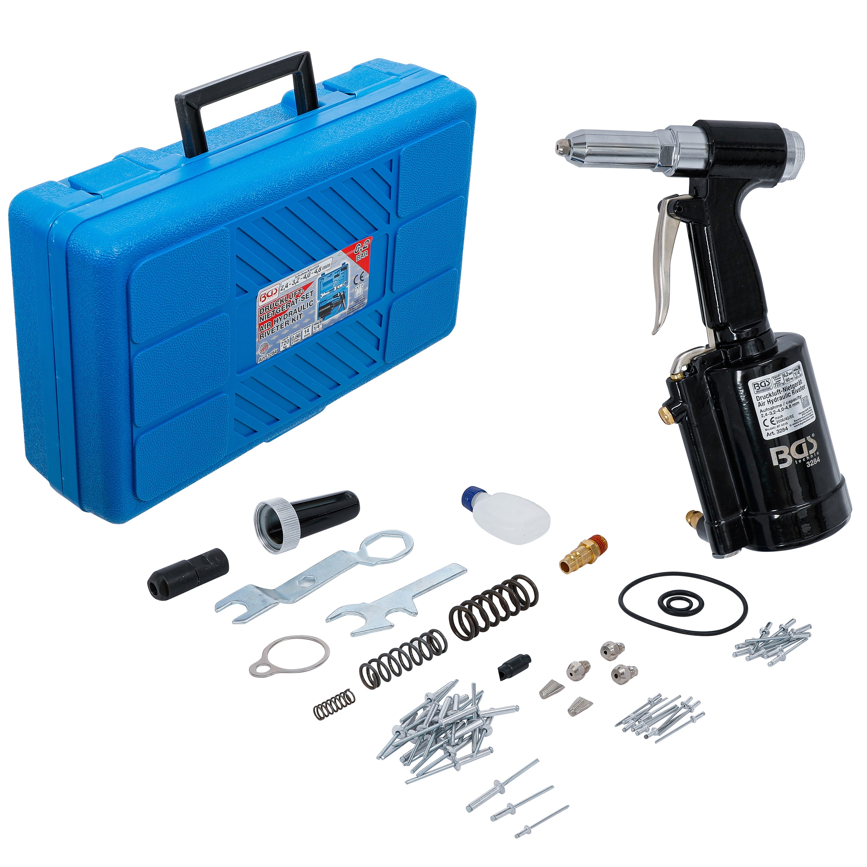 This air riveter is a powerful and efficient tool designed for setting aluminium rivets in sizes 2.4mm, 3.2mm, 4.0mm, and 4.8mm, ideal for metalwork, automotive tasks, and structural assembly.